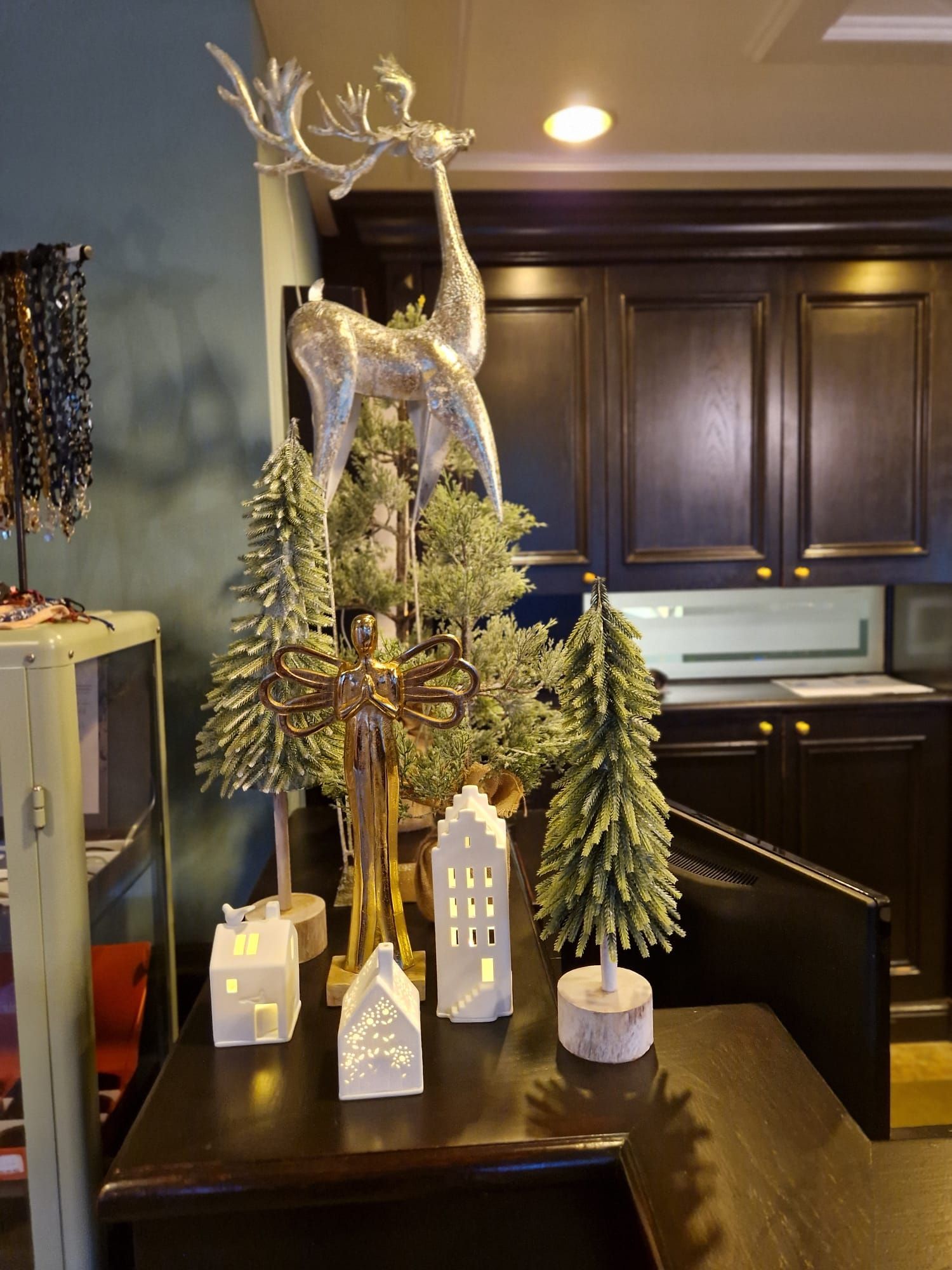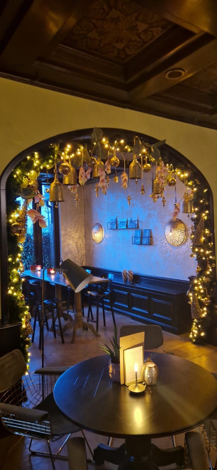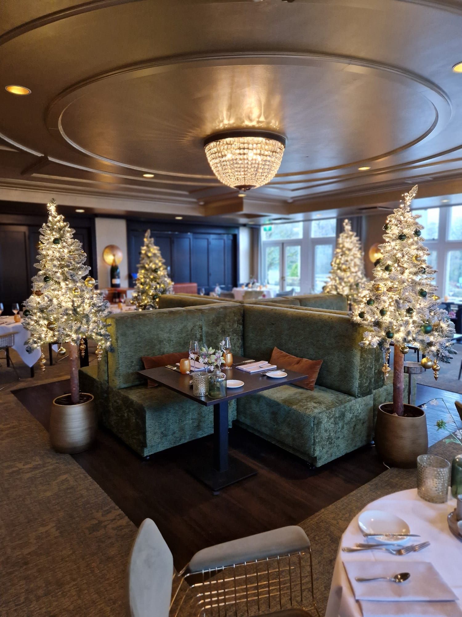We ontvingen een verzoek van Landgoed de Wilmersberg om in elke ruimte een opvallende eyecatcher te creëren: in de lounge een adembenemende boog, in de lobby een majestueuze kerstboom versierd met diverse luxe ballen, en in het restaurant een kalme sfeer te bewerkstelligen. Ook de receptiebalie kon worden aangekleed in winterse stijlen.